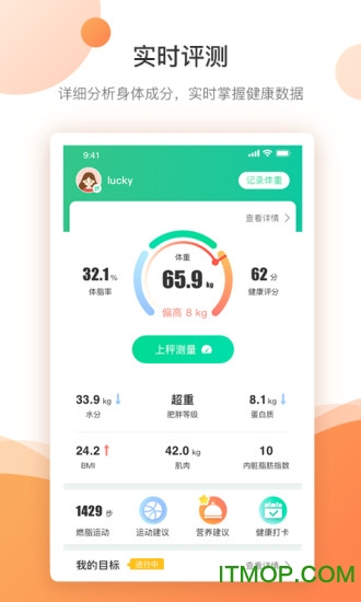 【实时评测】通过蓝牙连接智能秤,实时获取并分析身体成分数据,让用户随时掌握自己的健康状况。测量结果以直观的图表形式展示,各项指标变化一目了然。