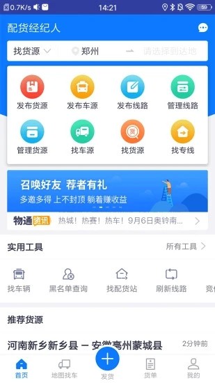 发车源:车主可随时发布车辆信息,包括车型、载重和运输范围等,让货主更容易找到合适的运输资源。