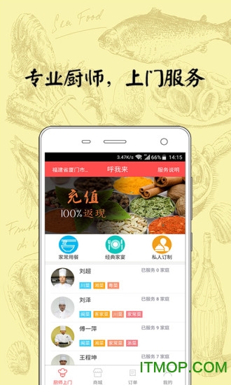 呼我来app是一款专注于高端私厨上门服务的移动应用平台,致力于为用户提供星级酒店级别的美食体验。通过这款应用,您可以轻松预约国内外顶尖厨师上门服务,无论是家常小炒还是精致宴席,都能满足您的需求。我们的厨师团队不仅厨艺精湛,而且注重食材新鲜与烹饪卫生,让您足不出户就能享受既美味又健康的美食,同时比外出就餐更经济实惠,是家庭聚会、商务宴请的理想选择。立即下载呼我来app,开启您的美食之旅吧!