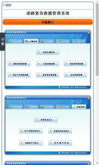 《道路紧急救援管理系统》是专为道路救援行业开发的综合性管理平台,采用先进的移动互联网技术架构。系统功能模块设计全面,包含员工管理(支持员工档案、考勤记录、绩效评估等)、会员服务(实现会员全生命周期管理)、救援调度(智能派单、GPS定位追踪)等核心功能。系统支持多维度数据分析,可生成各类统计报表,帮助管理者掌握业务运营情况。特别针对救援行业特点,开发了紧急事件预警、资源智能调配等特色功能,适用于道路救援公司、4S店售后部门、保险公司等多种应用场景。
