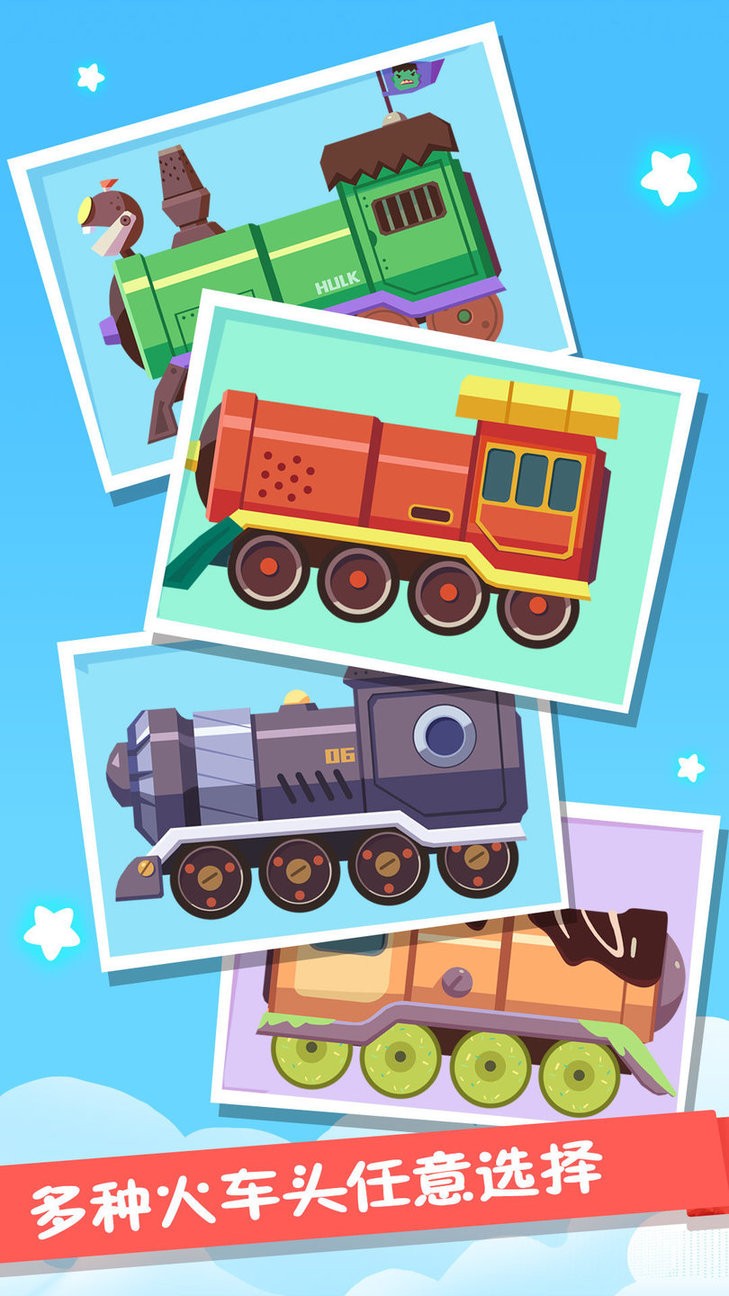 你是否曾梦想拥有一列属于自己的火车?现在,这个梦想可以轻松实现!火车为你提供了近七十种精致的火车部件,从复古的蒸汽机车到现代的高铁车厢,应有尽有。钢铁的质感、铿锵有力的轰鸣声,将带给你最真实的火车驾驶体验。你可以尽情发挥天马行空的创意,将这些部件自由拼接组合,打造出独一无二的小火车。无论是沿着中国的万里长城飞驰,还是远赴美国欣赏自由女神像的壮丽景色,只需动动手指,你的小火车就能带你环游世界!更有可爱的小熊在终点站等待你的到来,别忘了记录下到站时的喜悦时刻,拍照留念分享给朋友们哦!