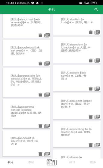 创新的记忆卡片系统将单词按词根词缀、使用场景等分类,配合形象化记忆提示,大幅提升记忆留存率。