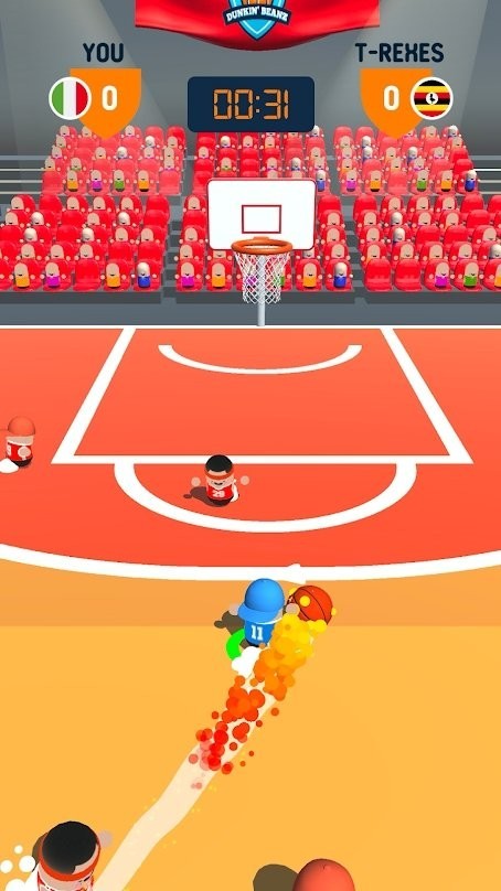 在《扣篮豆子人》中,玩家需要熟练掌握各种花式扣篮技巧,从基础的双手灌篮到高难度的360度旋转扣篮,每个动作都充满挑战性。游戏提供了丰富的特效和皮肤选择,让你的每次扣篮都与众不同。随着关卡推进,对手的防守会越来越严密,需要玩家不断提升操作技巧和反应速度。游戏还设置了多种特殊道具和技能,合理运用这些元素能让你在比赛中占据优势,体验更刺激的篮球对决。