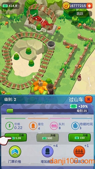 依据到来的金币,升级公园的游玩项目,如图所示,等级越高,获取的收益越大。建议采用"重点突破"策略,优先升级几个核心项目,而不是平均分配资源。