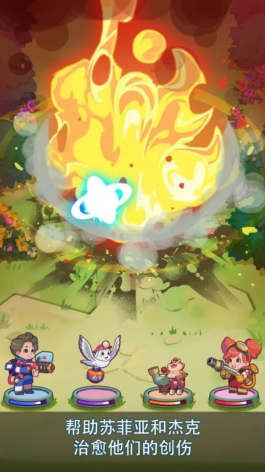 治愈森林的创伤,和小动物们成为朋友,消灭火灾之后还会有精灵出来,帮助你们复苏森林;