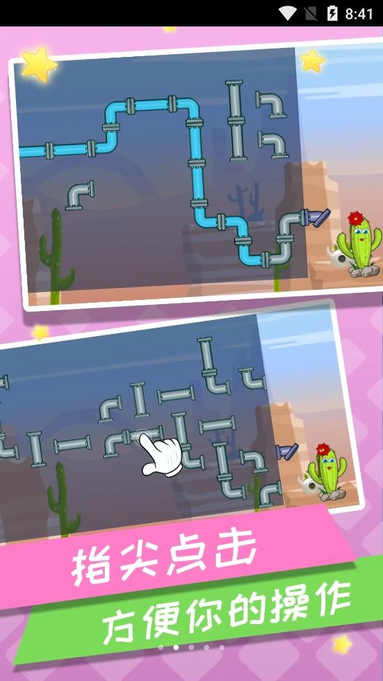 救救仙人掌游戏是一款解密类的益智闯关游戏,游戏名字直接告诉了玩家游戏任务,通过连接水管来拯救干涸的仙人掌,这考察玩家的逻辑思维能力和图形想象能力,通过移动扭转水管接通水流,让水流通往正确的目的地,就是你的仙人掌所在地,从而顺利通过游戏,喜欢图形解密类的玩家一定不能错过。
