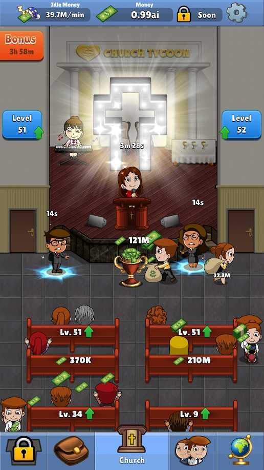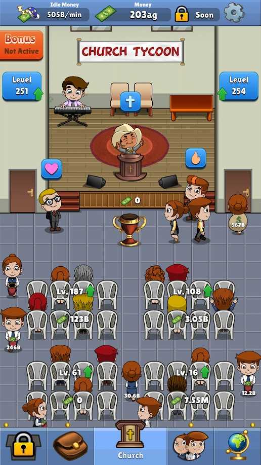 玩家需要通过战略性的扩张计划,逐步将教堂发展成世界级的宗教中心,吸引来自五湖四海的信徒前来朝拜。游戏提供了深度的人员管理系统,你可以根据每位牧师的特长分配不同的管理职责,打造高效的运营团队。此外,开创分支教会的玩法让你能够将信仰传播到更远的地方,通过建立新的宗教据点来进一步提升整体影响力。