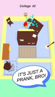 在《只是个恶作剧》中,你将化身为一名恶作剧大师,在精心布置的房间场景中施展你的整蛊才能。游戏提供了丰富的互动道具,从日常用品到特殊机关应有尽有。你可以将室友的牙刷涂上牙膏,在椅子上放置图钉,甚至设置弹弓陷阱。每个关卡都有不同的任务目标,完成越多的恶作剧就能获得更高的分数。游戏还设置了多种难度模式,从简单到困难,满足不同玩家的挑战需求。随着游戏进程的推进,你将解锁更多有趣的整蛊道具和特殊技能,让你的恶作剧更加出人意料。