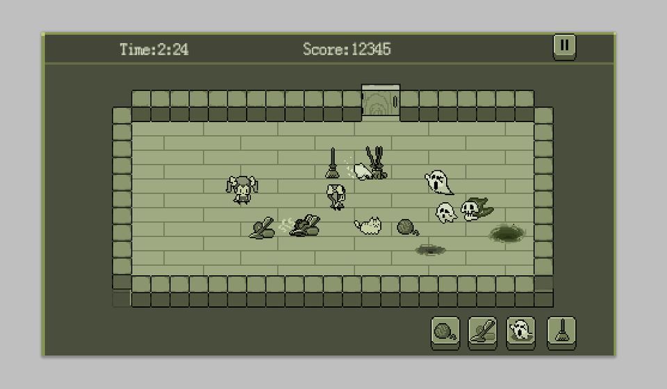 不要忘记使用吸尘器解决幽灵和恶魔,用扫帚解决地上的灰尘哦,一旦房间内再度空无一物,您的分数就又会增长啦!