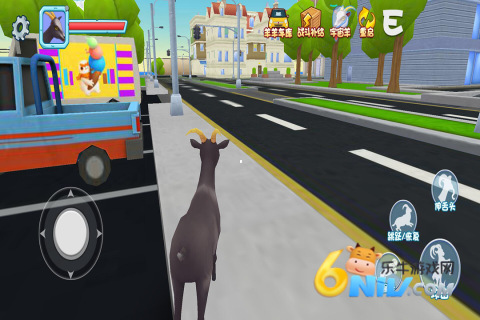 在游戏中,以随机模式为例,左下角的虚拟按键将控制你的山羊移动,操控感很爽。右侧按键则负责特殊动作,不同山羊的操作方式会有所区别。