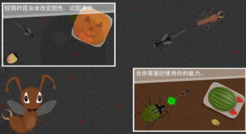 随着任务的不断完成,玩家的蚂蚁体型会逐渐增大,但同时面临的危险也会越来越多。在探索过程中,要时刻警惕比自己强大的生物,特别是那些巨型生物,它们的一击就能让你立即死亡。游戏中的日常任务包括外出觅食,玩家需要寻找弱小易捕食的目标,在这个充满危险的世界中生存下去。此外,游戏还加入了天气系统和昼夜交替机制,为冒险增添了更多变数。
