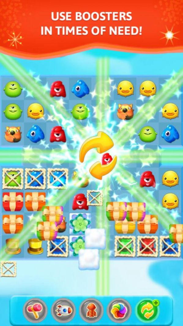 《怪物表情连接》的核心玩法是交换并匹配至少三个相同类型的表情符号来触发消除效果。游戏特别设计了丰富的表情互动系统,玩家可以发现各种机智有趣的怪物表情组合。通过收集游戏中的金币,玩家可以购买强力的道具助推器来帮助消除。特别值得一提的是,当玩家成功连接超过四个表情符号时,将会触发特殊效果,变身成为更大型的表情,带来更震撼的消除体验。这些精心设计的游戏机制让消除过程充满惊喜和乐趣。