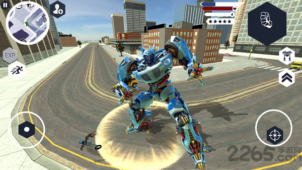 在这款游戏中,玩家将体验到前所未有的机器人变形乐趣。从普通的自行车形态瞬间变身为战斗机器人,或是切换成警用鹰形态进行空中作战。游戏采用先进的物理引擎,为玩家呈现流畅的变形动画和真实的飞行体验。在城市、荒野等多种场景中,你需要运用不同形态的优势与邪恶机器人展开激战。每个形态都拥有独特的武器系统和战斗技能,让战斗充满策略性。探索未来都市的每个角落,解锁更多隐藏内容,成为最强大的变形战士。