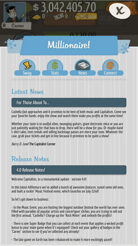 游戏最大的特色在于其丰富的成长系统和真实的商业模拟体验。玩家可以体验到从街头小贩到跨国企业CEO的全过程,每个阶段都有独特的经营挑战和成就感。游戏还设计了完善的科技树系统,玩家可以通过研发新技术来提升生产效率。最令人兴奋的是,当积累足够财富后,玩家甚至可以启动登月计划,将商业版图扩展到外太空。此外,游戏还加入了天使投资人系统,让玩家可以借助外力加速企业发展。