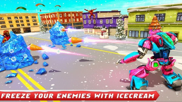 游戏的核心特色在于其独特的冰淇淋元素之力。玩家可以利用这些特殊能力,让敌人在战斗中脚底打滑或被冰冻,从而占据战斗优势。此外,游戏还提供了多样化的机器人改造系统,玩家可以在下雪的环境中完成任务,解锁更多强大的冰淇淋机器人。游戏环境设计逼真,战斗场景充满激情,让玩家时刻保持精神焕发的状态,享受每一场战斗的乐趣。