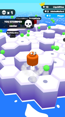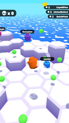 玩家通过向指定方向滑动手指并抬起,即可完成冲刺和跳跃,想办法压碎其他玩家。或者运用战术,将他们推落平台,坐收渔翁之利,在时间结束前让自己变得尽可能大。