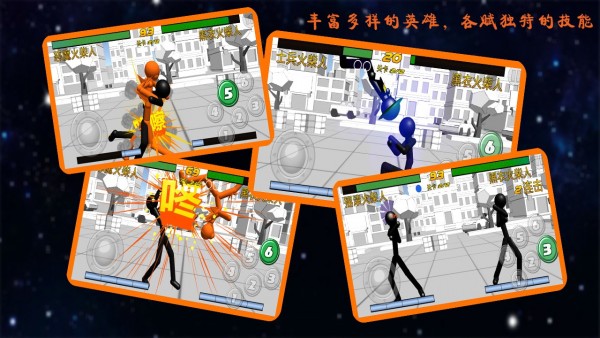 游戏拥有精致简洁的画面设计,以及幽默有趣的动画功能,给玩家一种不思往事的感觉。独特的火柴人造型搭配流畅的动作表现,让整个战斗过程充满视觉享受。游戏中的每个角色都拥有鲜明的个性特征,为对战增添更多趣味性。