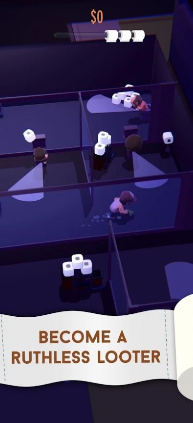 游戏操作简单直观,玩家可以快速上手。你的主要任务是躲藏起来,避开保安的搜查,同时收集足够的卷纸。随着关卡的推进,游戏难度会逐渐增加,玩家将解锁更多有趣的挑战内容,例如更复杂的巡逻路线、新增的障碍物以及特殊道具。这些新元素会让游戏体验更加丰富,带来更刺激的冒险感受。每一关都充满未知的惊喜,等待玩家去探索和征服。