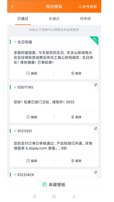 云呱呱app内置丰富的短信模板库,涵盖各行业常见场景,商家可以直接使用或参考这些专业模板。同时,应用提供灵活的模板编辑功能,商家可以根据自身需求自由编写个性化短信内容。系统还会智能保存常用模板,方便下次快速调用,大幅提升工作效率。