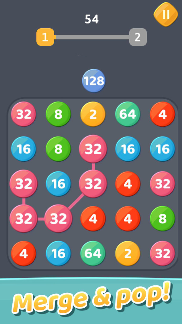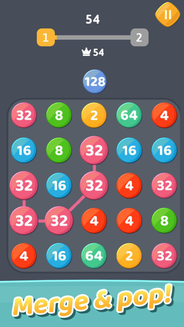 看看这个美丽多彩的益智游戏。将手指移到气泡上并连接它们,使它们合并为更高的数字