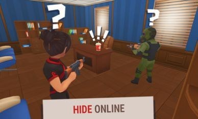 玩家在游戏中需要和敌人玩躲猫猫的游戏,要在房子中藏好,不要被敌人找到。