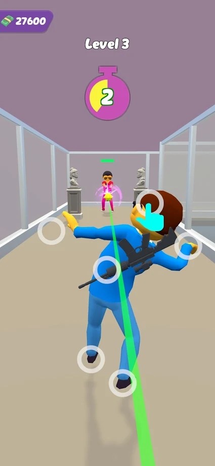 玩家在游戏中是一位敏捷属性直接拉满的闪避大师,任何射向自己的武器都可以依靠自己的反应力去躲开。游戏的玩法也很简单,玩家将会身处于一个环境中,需要玩家做的,就是尽可能闪避掉更多射向自己的武器。虽然子弹对我们来说是十分快速的,但是在这款游戏内,玩家们就能够实现躲子弹的神操作。