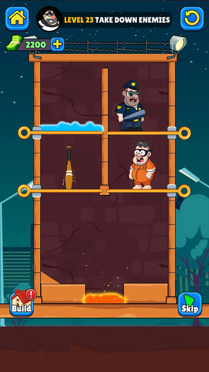 在拉针解救官方版中,你将化身机智的救援专家,通过精准操控场景中的大头针来帮助被困男子逃出生天。游戏设计了上百个精心打造的关卡,每个关卡都暗藏玄机。你需要仔细观察场景布局,判断正确的拉针顺序,既要让男子顺利拿到金块,又要小心避开各种致命陷阱。随着关卡推进,还会出现会移动的怪物、突然坍塌的地面等动态障碍,大大提升了游戏的挑战性和趣味性。游戏还特别设置了隐藏成就系统,等待最细心的玩家来发掘。