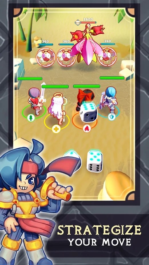 投掷骰子,并将其分配给您的英雄。观看惊人的攻击和能力的发展。明智地计划您的回合制战斗策略并取得胜利。最新版本加入了元素克制系统,火、水、风、土四种属性相互制约,合理搭配队伍属性将事半功倍。