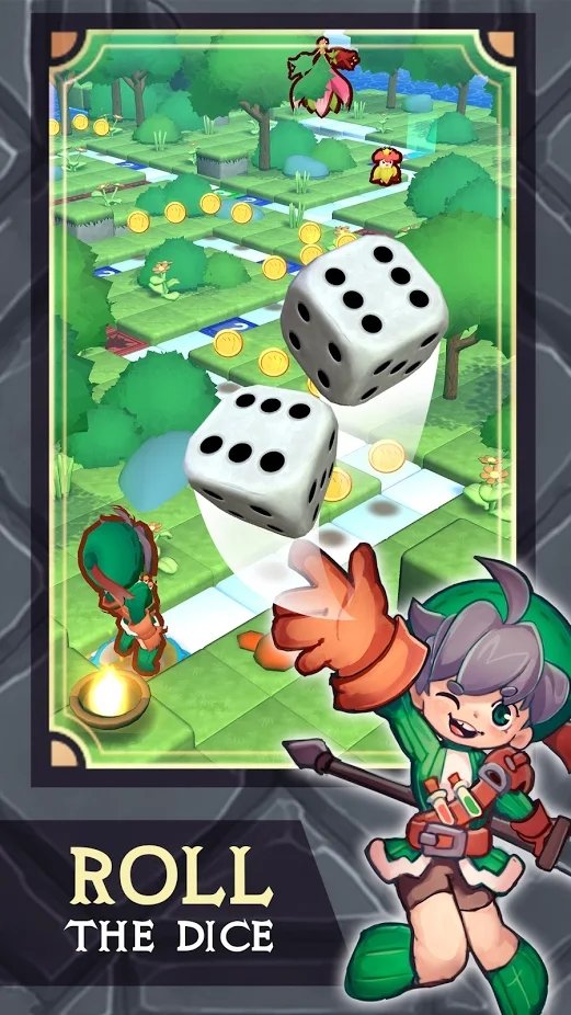 掷骰子并计划通过棋盘的路径。从森林到沙漠和地牢-永不停止探索!游戏新增了昼夜交替系统,不同时段出现的NPC和事件各不相同。特殊地形如流沙、冰面会影响骰子点数效果,考验玩家的应变能力。