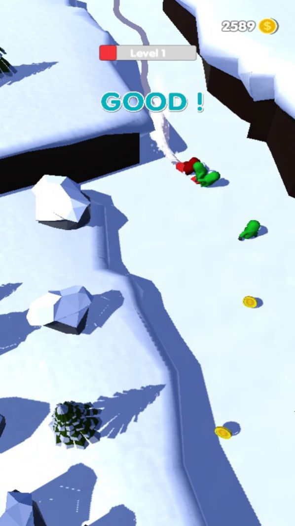 过关时会遇到很多功能各异的道具,拾取后会立即生效,比如可以短暂飞行的翅膀道具。不断挑战个人最好成绩是游戏的核心玩法,赛道没有尽头,所以需要全神贯注地突破各种障碍。游戏设计了非常可爱的卡通人物形象,更多风格迥异的角色可以在商店购买解锁。每个角色都有独特的滑雪动作和特效,收集全部角色也是游戏的乐趣之一。