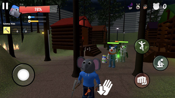 游戏中设计了多种不同强度的敌人,其中一些被卡通猫感染的变异体特别难以对付。敌人系统采用动态生成机制,每2分钟就会刷新3个新的敌人。玩家需要格外小心,一旦被感染的小猪击中,将损失10点生命值。游戏还加入了真实的生存要素,设置了口渴和饥饿度系统,玩家可以在场景中搜寻水壶和汉堡来补充体力。