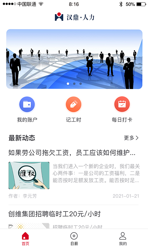 汉鼎人力app自动统计并可视化展示账户余额,智能标注昨日收支明细,帮助用户快速掌握财务状况。日薪领取功能支持一键操作,系统自动保存记录并生成电子凭证,确保流程可追溯。考勤模块支持人脸识别、定位打卡等多种方式,实时更新考勤进度与历史记录。此外,平台整合行业资讯与招聘动态,为用户提供职场增值服务。