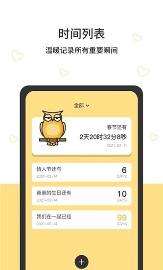 猫头鹰时间规划倒数日是一款集时间管理、日程提醒、纪念日记录于一体的全能型APP。无论是工作上的重要会议,还是生活中的特殊纪念日,它都能为您提供贴心的提醒服务。想象一下,当您和心爱之人的重要日子即将到来时,APP会提前提醒您准备惊喜,让每个特殊时刻都充满期待。