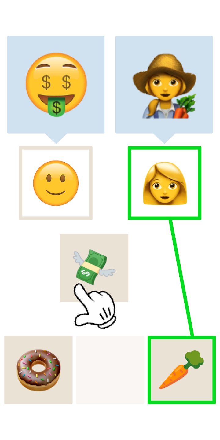 游戏的核心玩法是寻找表情符号之间的内在联系,通过连线将它们正确配对。这种看似简单实则充满策略性的玩法,既休闲又富有挑战性。游戏特别设计了具有教育意义的休闲模式,让玩家在娱乐的同时也能锻炼观察力和逻辑思维能力。玩家可以参与各种主题挑战,从简单的表情配对到复杂的逻辑推理,难度循序渐进。游戏还定期更新特殊活动关卡,带来更多新鲜有趣的挑战内容,让玩家始终保持高涨的游戏热情。