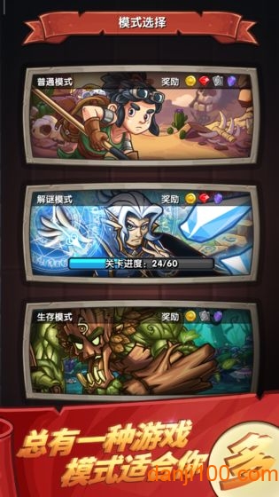 游戏以西幻为游戏背景,卡牌为主要玩法,卡牌类型十分丰富,上百张卡牌任你选择,还有超有趣的消除和解谜玩法结合,非常的轻松有趣,喜欢的话就来单机100手游网下载吧。