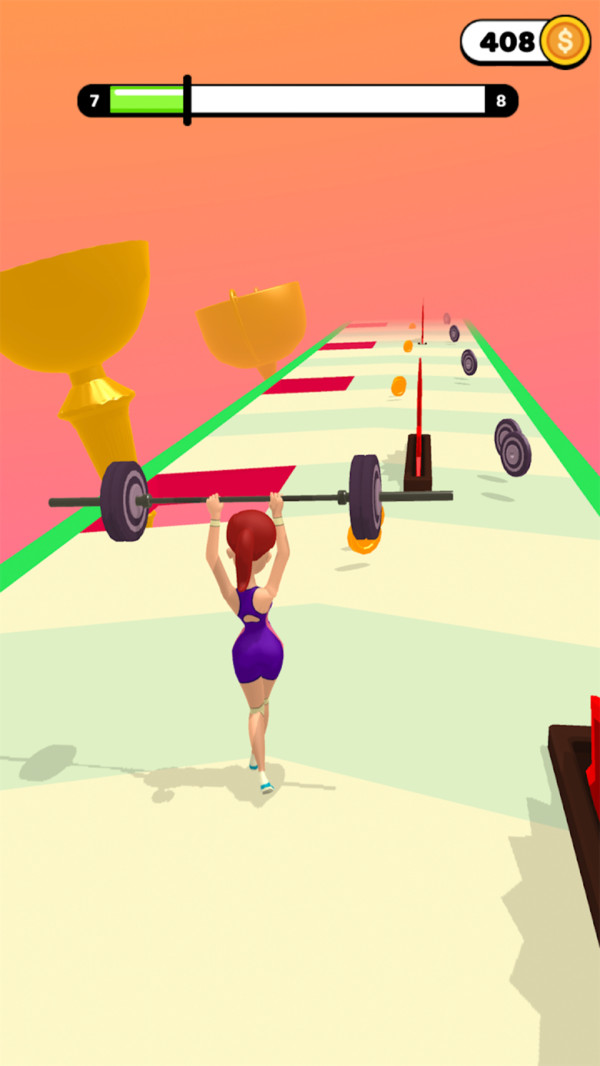 在游戏中我们随着赛道一直不停的奔跑,途中能够捡到更多的杠铃。