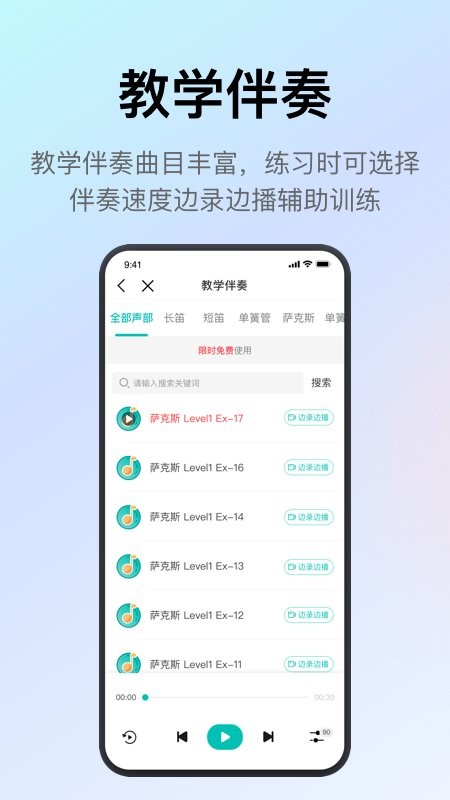 管乐迷学生端是一款专为管乐爱好者打造的专业乐器学习平台,致力于为不同年龄段的学习者提供全面、系统的管乐教学服务。平台汇聚了长笛、单簧管、萨克斯管、小号、长号、大号、圆号、上低音号等多种管乐器的优质教学资源,由资深教师团队提供在线指导,帮助学生更高效地掌握演奏技巧。通过智能陪练系统,平台能够实时评估学生的演奏表现,给予专业反馈,让学习过程更加科学有效。
