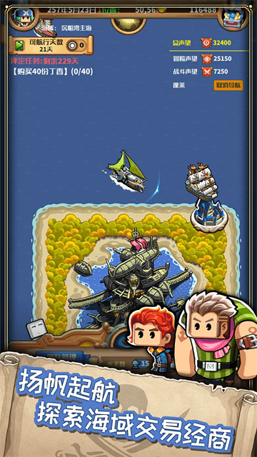 游戏初期建议先去码头进行补给,然后前往市场采购必需品。初始资金有限,建议优先完成支线任务积累资金。主线推进过程中会获得木材资源,建议优先建造12万金币的B型炮船。初期资金不足时,可以前往沉船湾的北海和南海区域打击海盗获取战利品。战斗时注意将旗舰布置在右下角位置,这样能获得最佳战斗效果。特别提醒,主海左下角萨佛克港口的支线任务是一场赛跑比赛,失败将错过重要角色。