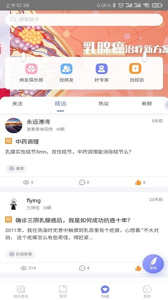 作为国内最大的乳腺癌患者线上社区,平台已聚集了数十万真实用户。在这里,你可以找到与自己病情相似的朋友,交流治疗心得,分享生活点滴。平台严格保护用户隐私,所有交流都在安全的环境中进行。