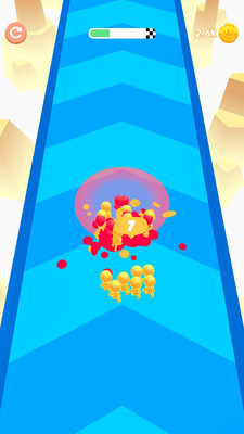 当小人撞击到白色的小人时,小人会变成玩家的队友并跟随。但要注意红色小人会减少你的队伍人数。