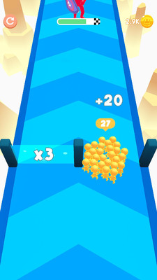 玩家控制的小人会自动前进,左右拖动屏幕让小人左右移动。注意观察前方地形变化,提前规划最佳路线。