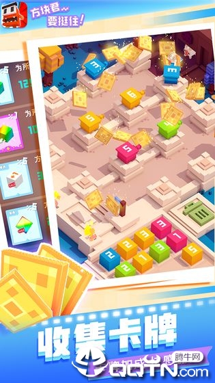 《方块君要挺住》最引人注目的特色在于其创新的合并+塔防玩法机制。玩家需要通过合并方块来升级防御塔等级,每种炮塔都拥有独特的属性特征,玩家需要根据战场形势灵活调整炮塔的摆放位置。游戏还融入了丰富的卡片收集系统,每张卡片都能提供特殊的增益效果,合理运用这些卡片将大大提升通关几率。