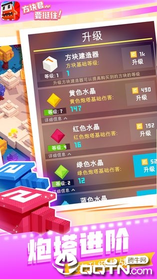 作为一款独具特色的方块合并塔防游戏,《方块君要挺住》将经典的合并玩法与塔防策略完美结合。游戏开始时,玩家会获得基础方块单位,通过巧妙地合并相同类型的方块,可以创造出更强大的防御武器。随着游戏进程的推进,玩家需要不断调整防御阵型,合理部署各类方块武器,以应对不同属性的敌人进攻。游戏操作简单直观,新手玩家也能快速上手,但同时蕴含着丰富的策略深度,让玩家在守卫城堡的过程中享受到层层递进的挑战乐趣。