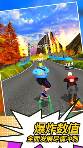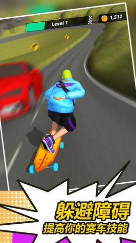 本作最具特色的滑板升级系统让游戏体验更加丰富多彩。通过收集各种零件和道具,玩家可以将初始的普通滑板逐步升级改造,最终甚至能变身为炫酷的小汽车。游戏采用经典易上手的操作方式,仅需通过简单的指尖滑动就能完成各种高难度动作。同时,游戏对玩家的反应速度和手眼协调能力提出了较高要求,是锻炼反应能力的绝佳选择。