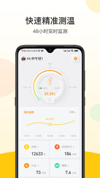 支持个性化报警阈值设置,当体温超过设定值时,APP会通过声音、震动和弹窗三重提醒确保您不会错过任何异常情况。报警功能可设置为持续提醒模式,直到用户手动确认或体温恢复正常范围。