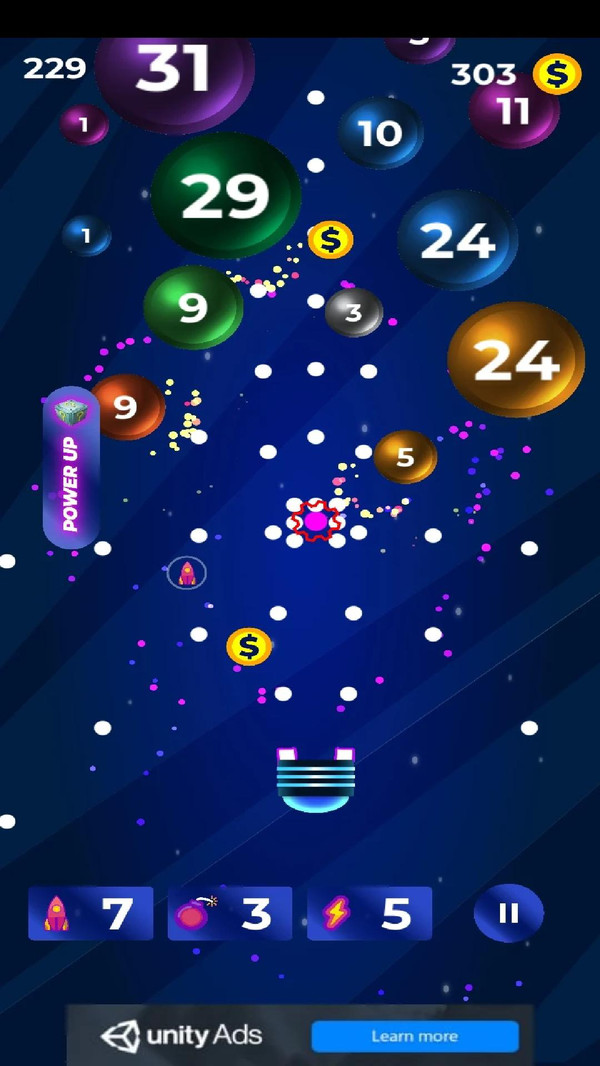 从下方中央位置的发射台射出泡泡,当多于或等于3个同色的泡泡相连则会消失。