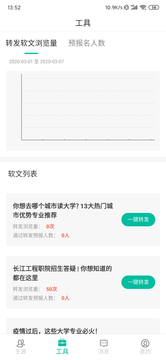做教师手中的招生利器,能够智能匹配,助力寻找有意向的学生,通过AI算法分析考生画像;在app内直播推送动态,还能助力学生查看校园风景,支持360°VR全景漫游;全面展示校园动态,信息透明,更容易实现轻松招生,每日自动生成数据可视化报告;随时可在平台查看自己分享的校园动态,还能进行动态内容管理,支持多账号协同编辑;支持进行线上互动,实时交流,非常利于为学生解答心中疑问,集成智能语义分析功能;通过消息提醒设置的操作,助力教师快速查看每一条新消息,可设置分级提醒优先级。