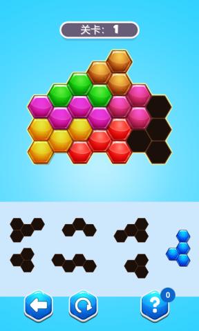 游戏的核心玩法基于一个由61个小六边形组成的棋盘空间,每个大六边形的边由5个小六边形构成。玩家需要将系统随机给出的各种六边形组合拖放到大六边形的空白处,当拼图块排列成完整的一行或多行时就会消除得分,连续消除还能获得额外的Combo加分。游戏失败的条件是棋盘上再也无法放置任何一个六边形组合。虽然游戏中的每个元素看起来都很简单,但当它们组合在一起时,却能产生1+1>2的奇妙效果。玩家可以精心规划每一步,也可以随心所欲地摆放,不同的玩法都能带来独特的乐趣。游戏自由度很高,容易上手但难以精通,每个玩家都会不断挑战自己的最高分。