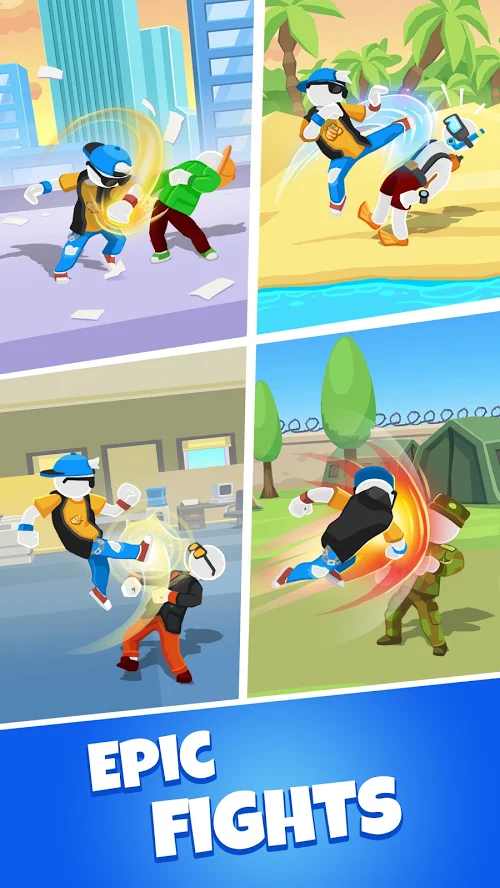 打死你丫的是一款超级刺有趣的动作闯关手游,游戏玩法多样化,玩家们需要在游戏中选择自己的火柴人卡通角色进行战斗,游戏中我的火柴人角色超多,每一位火柴人都有着不一样的专属技能和属性哟,玩家们需要经过简单的操作即可开始自己的PK之旅,玩家们需要将游戏画面中相同的物品进行合并消除,这样玩家们就可以拥有释放技能或者攻击的机会,逐步的将敌人击败,快来下载体验吧!