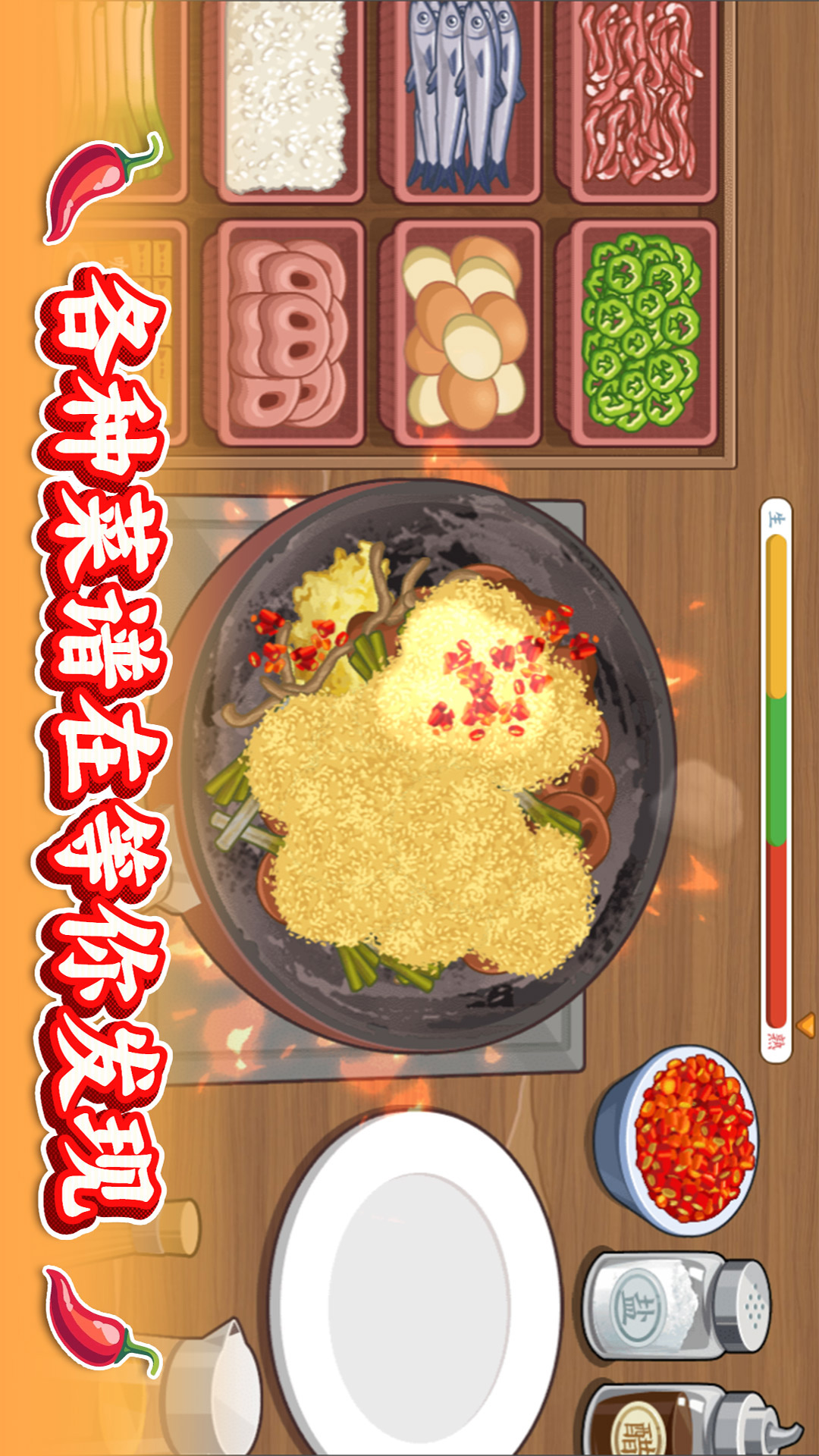解锁新菜品:设置50个等级成长体系,每提升5级就能解锁一个地方特色美食系列,保持游戏新鲜感。